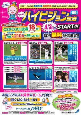 2012年4月3日(火)から、ケーブルテレビ【デラックス】【ベーシック】内の