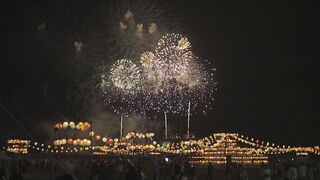 大洗町の誕生70周年を記念し、例年よりもスケールアップして開催された花火大会。