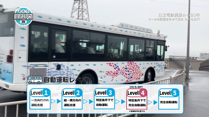 2025年2月に国内で初めて運行開始された中型自動運転バスで日立を巡る旅番組。